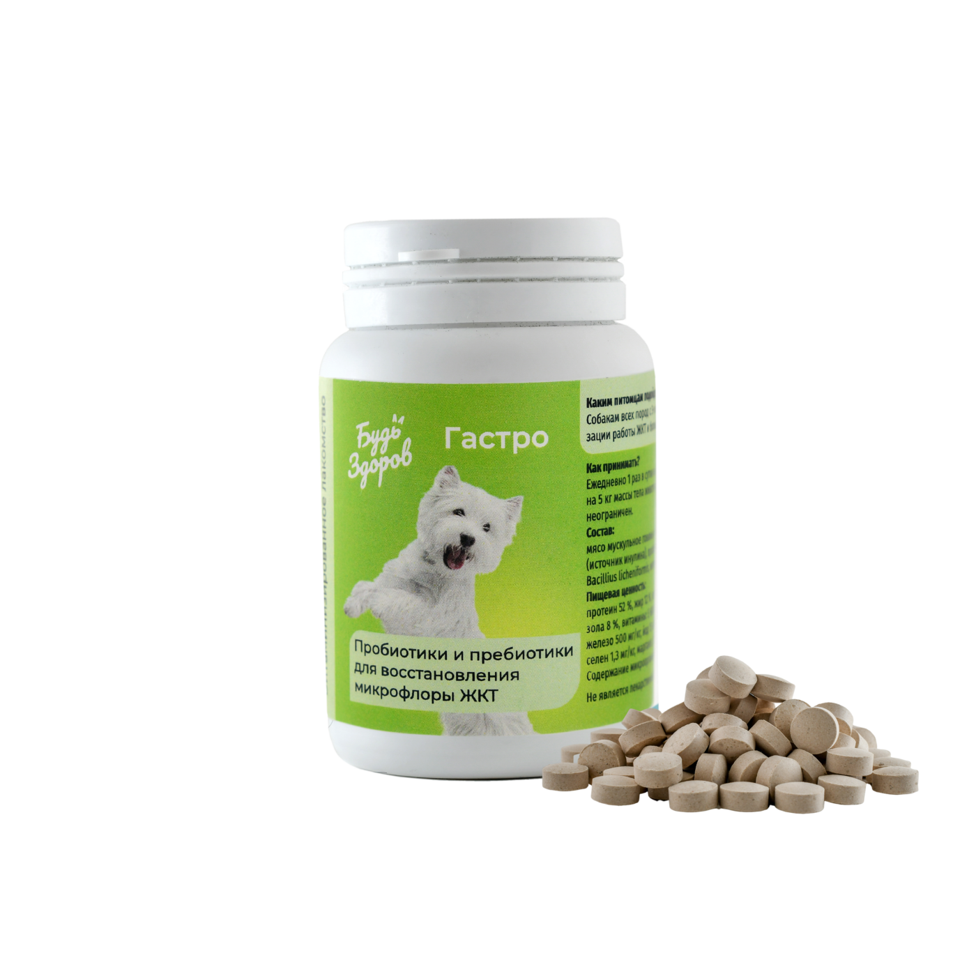Дозировка: ежедневно 1 раз в сутки из расчета 1 таблетка на 5 кг массы тела животного. Курс применения неограничен.